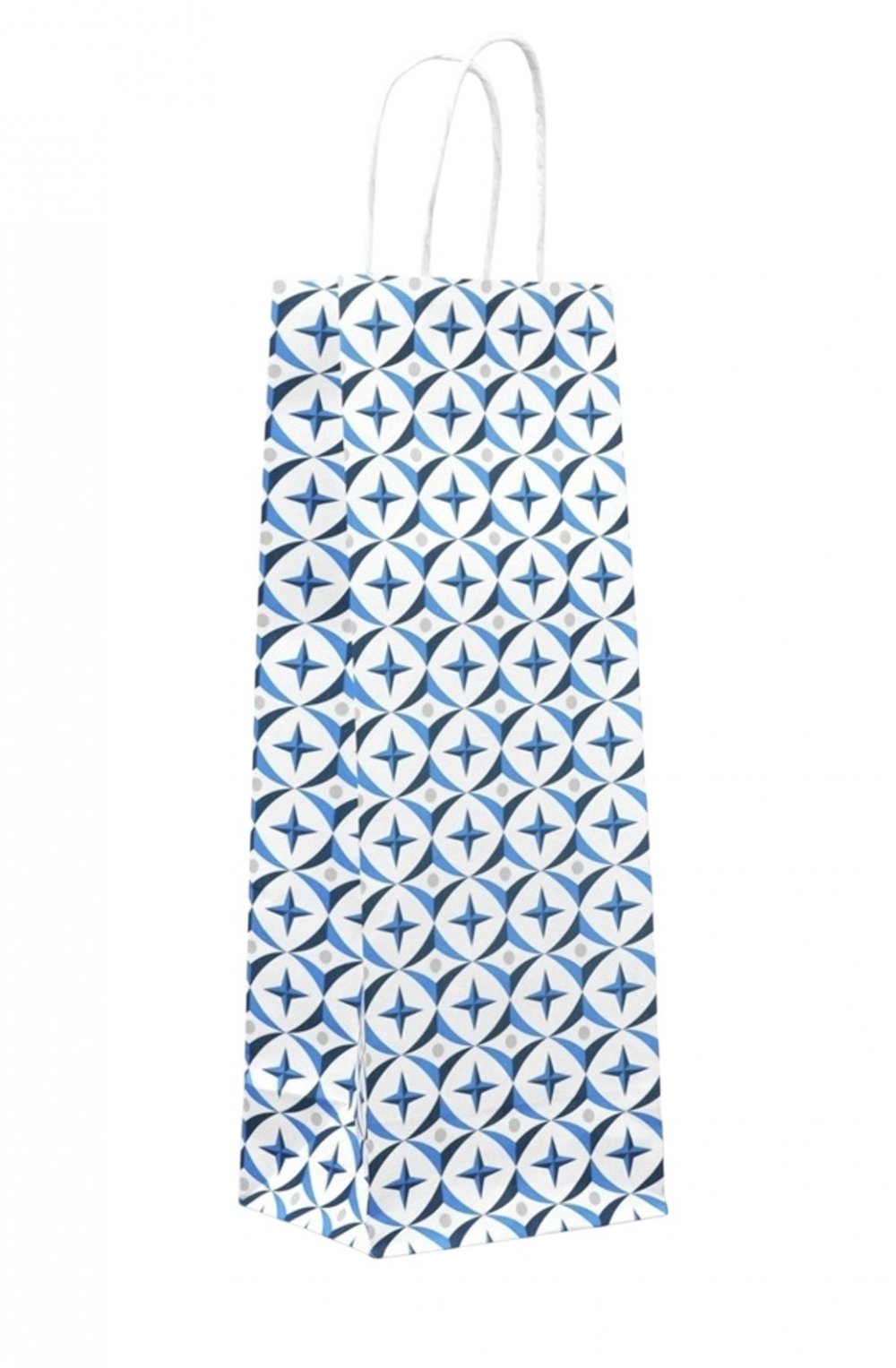 Пакет под бутылку 13*36*10см Геометрия, белый крафт